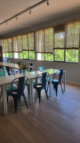 Espai diàfan amb molta llum natural i vistes al Passeig. Capacitat per a 30 persones aprox. Situat al primer pis amb escales. Disposa de 2 lavabos, nevera per begudes, projector, pantallla, equip de música, microones